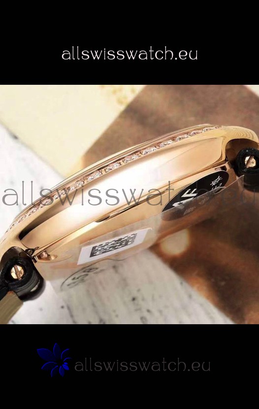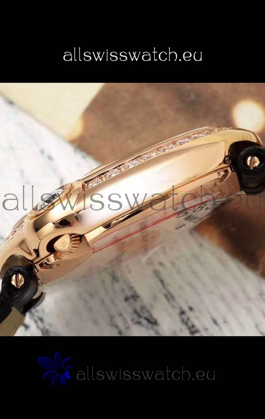 Rose Gold Plating on 904L Stainless Steel Casing with High Quality Cut Diamonds Bezel