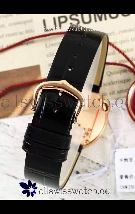 Ballon Blanc De Cartier Swiss Quartz Replica Watch in Rose Gold Casing Leather Strap