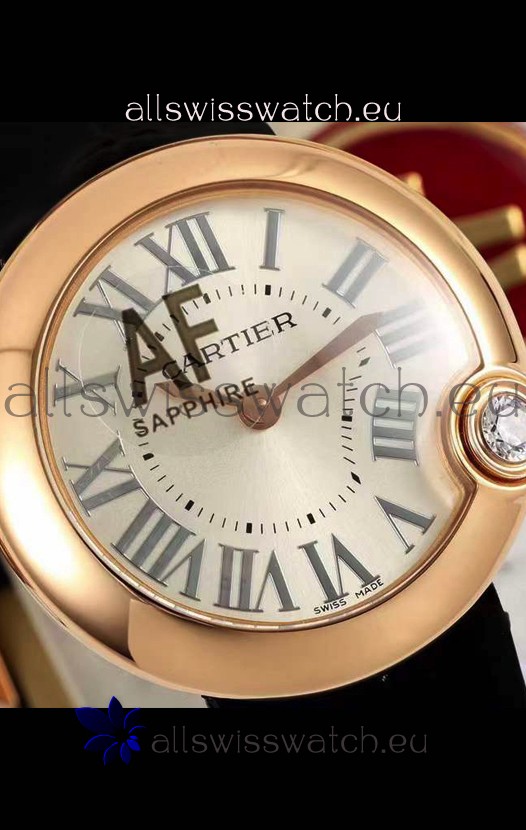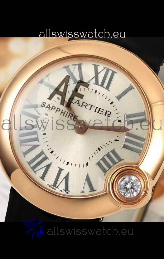 Ballon Blanc De Cartier Swiss Quartz Replica Watch in Rose Gold Casing Leather Strap