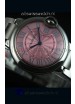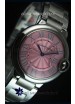 Pink Dial with Roman Hour Numerals and Blue Hands