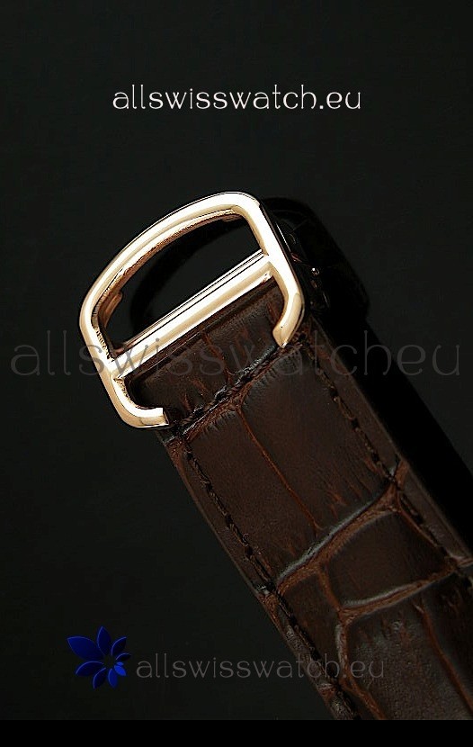 Genuine Brown Leather Strap equipped with Folding Clasp and Cartier Markings/Engravings