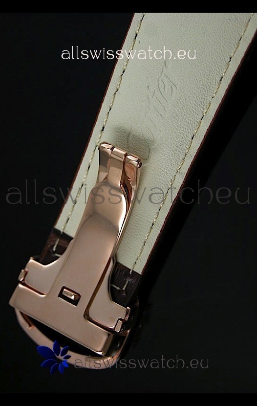 18k Pink Gold Plating on 440 Polished Stainless Steel Case with Cartier Markings and Engravings