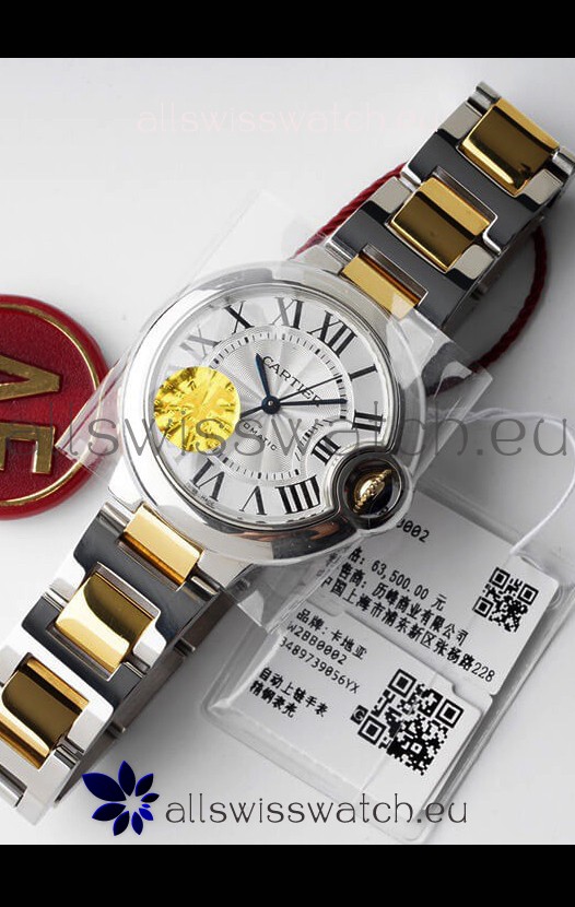 You're reviewing: Ballon De Cartier Swiss Automatic 1:1 Mirror Quality 33MM in 2 Tone Yellow Gold Casing