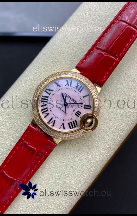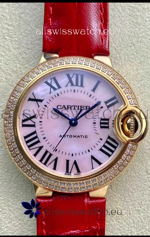 Ballon De Cartier Swiss Automatic 1:1 Mirror Quality 33MM in Rose Gold Pink Pearl Dial