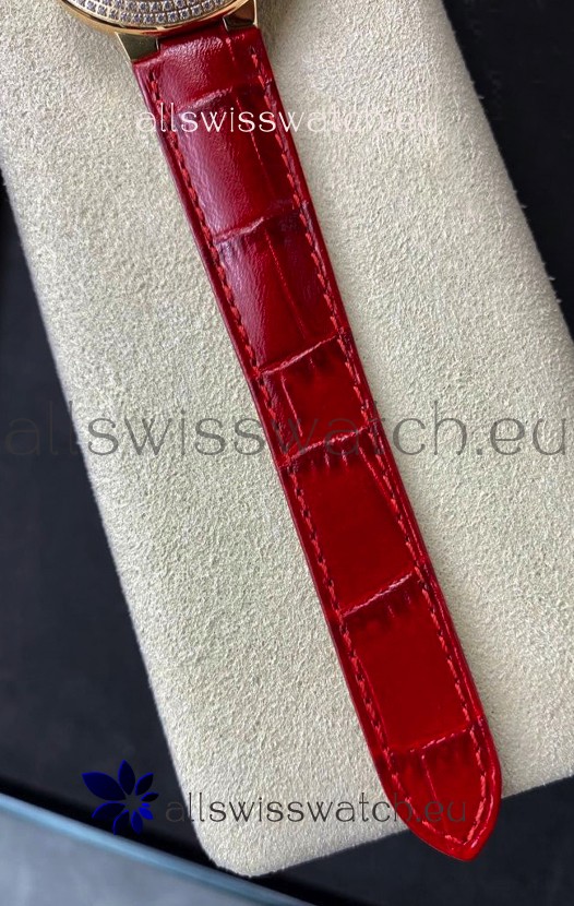 Genuine Red Leather Strap with Cartier Markings/Engravings and Double Folding Clasp
