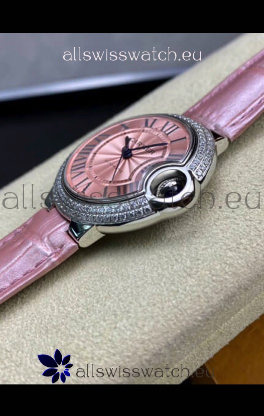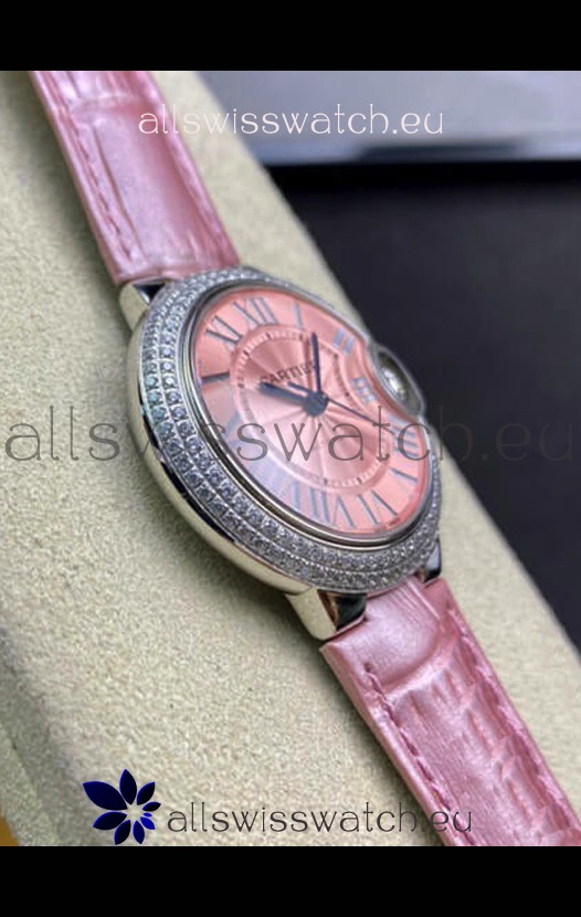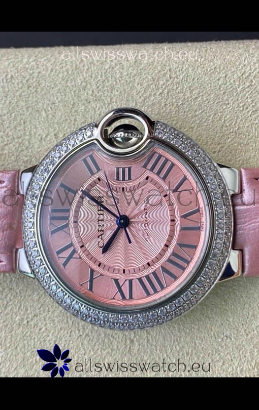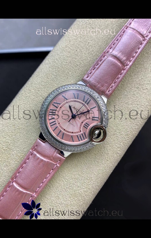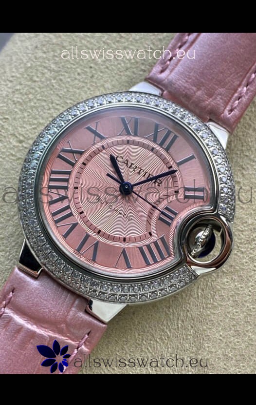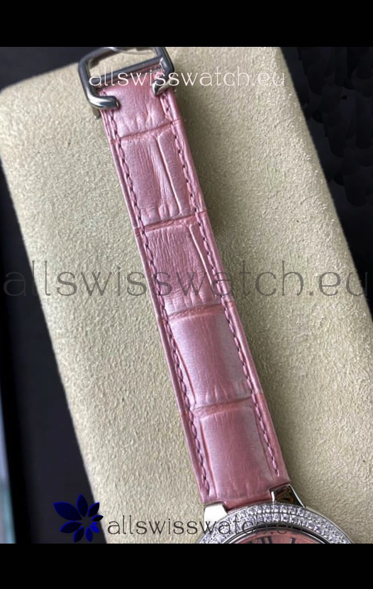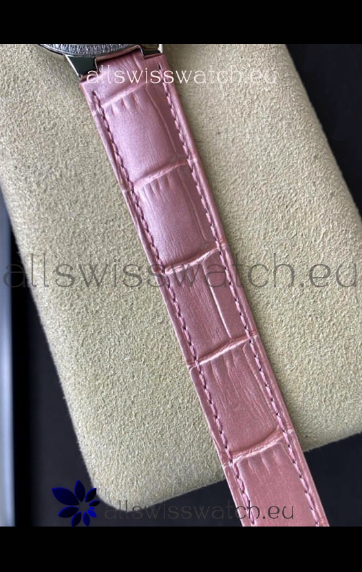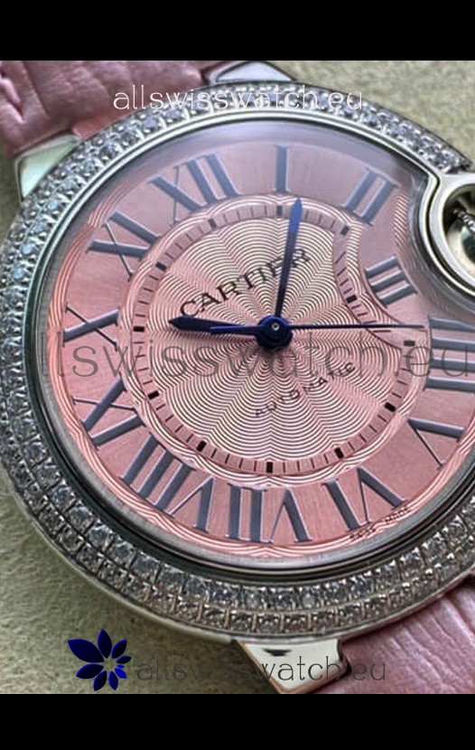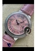 Pink Dial with Roman Hour Numerals. Swiss Cut Diamonds Bezel