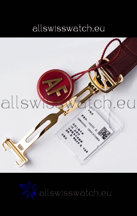 Genuine Leather Strap with Cartier Markings/Engravings and Double Folding Clasp