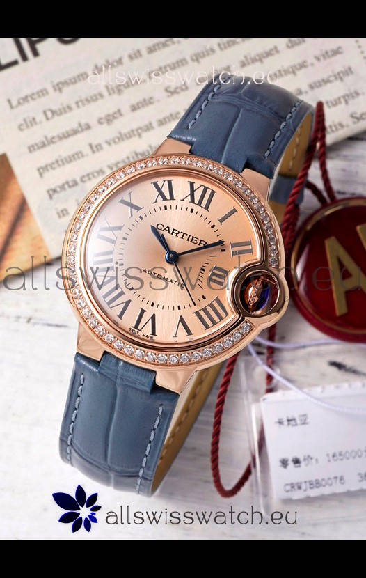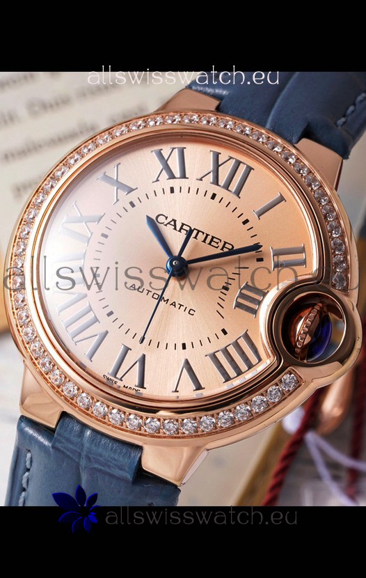 Ballon De Cartier Swiss Automatic Gold Dial Mirror Quality 33MM in Rose Gold Plating