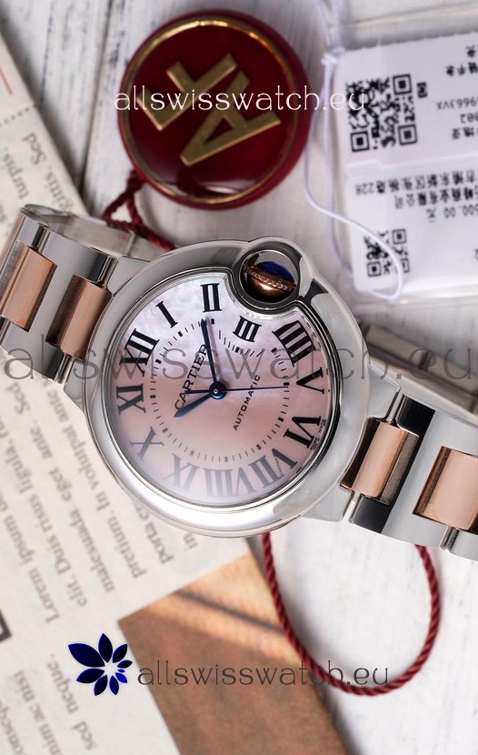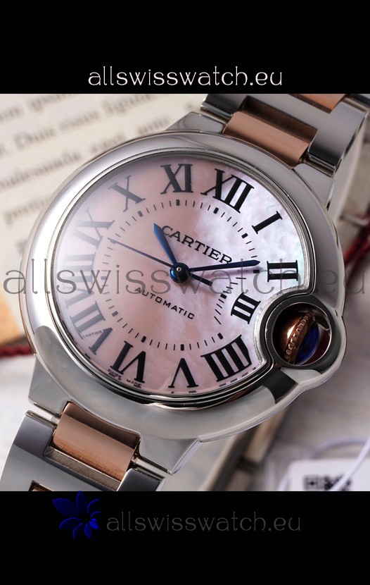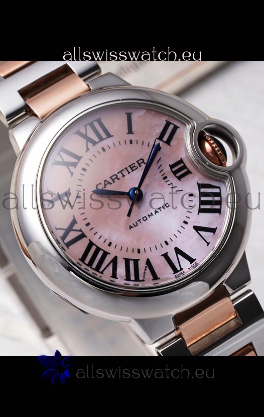 Ballon De Cartier Swiss Automatic Pink Pearl Dial Mirror Quality 33MM in Two Tone Casing