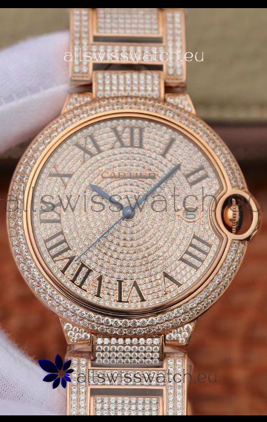 Ballon De Cartier Swiss Automatic Watch with Diamonds Embedded Dial and Casing - 42MM