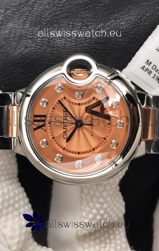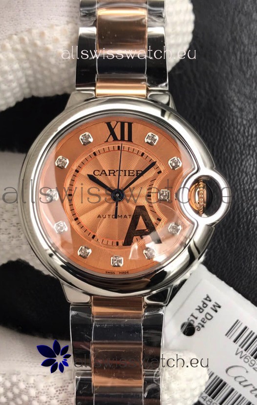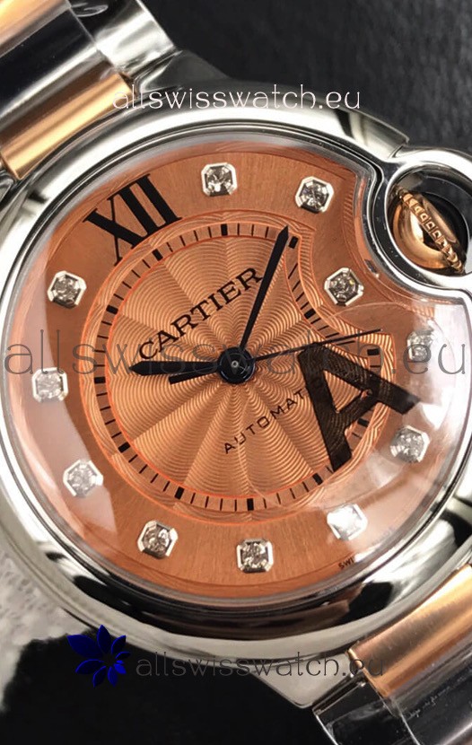 Ballon De Cartier Swiss Quartz 1:1 Mirror Quality 28MM in Two Tone Rose Gold Strap