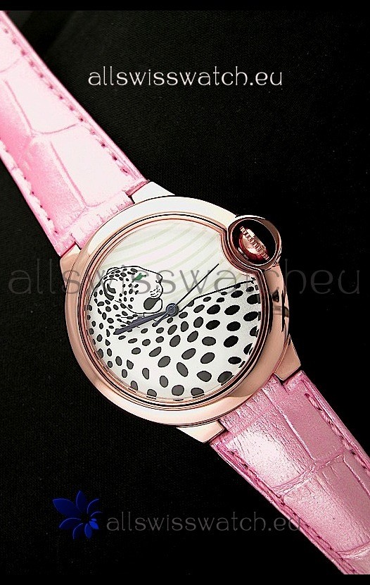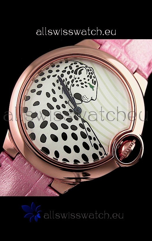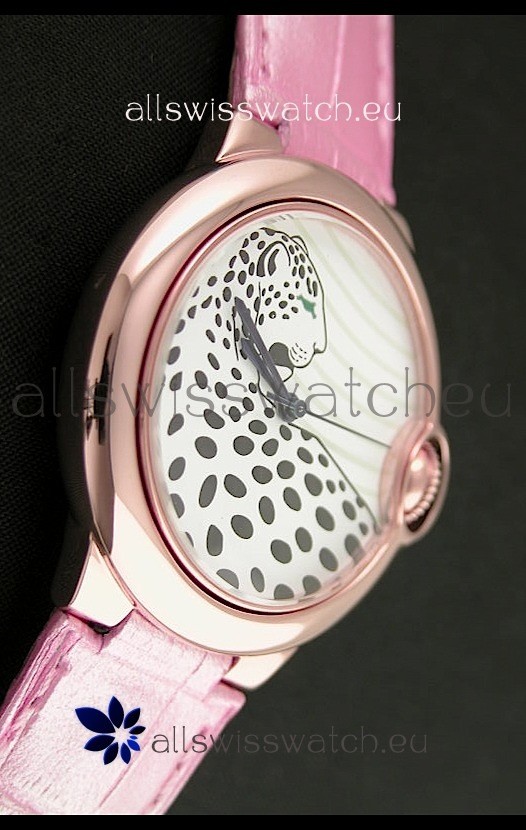 Ballon De Cartier Watch in Pink Gold Casing with Leopard Dial