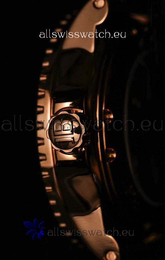 Rose Gold Plating on 904L Steel Casing with all markings/engravings as per the originals.