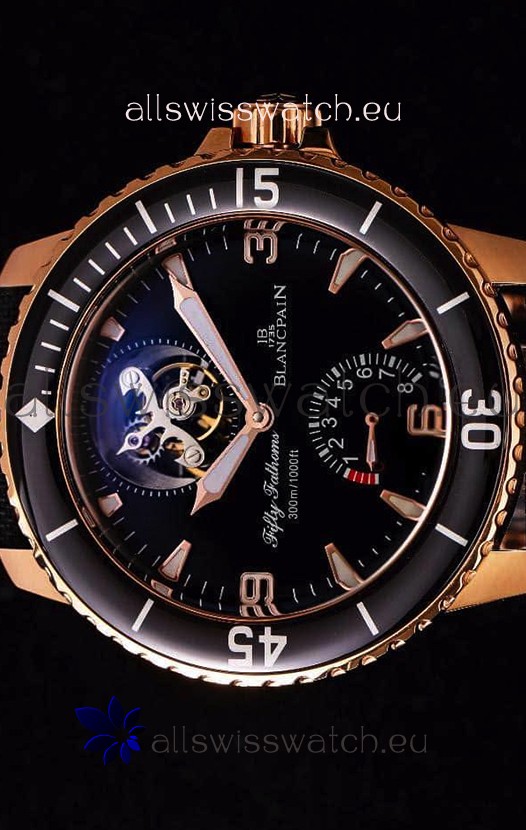 Blancpain Fifty Fathoms Tourbillon 8 Jours 1:1 Mirror Swiss Replica Watch in Rose Gold Casing