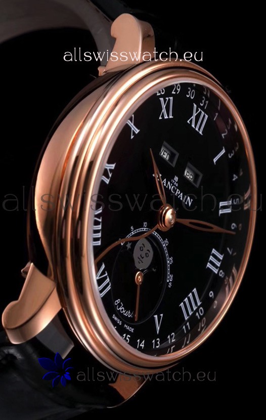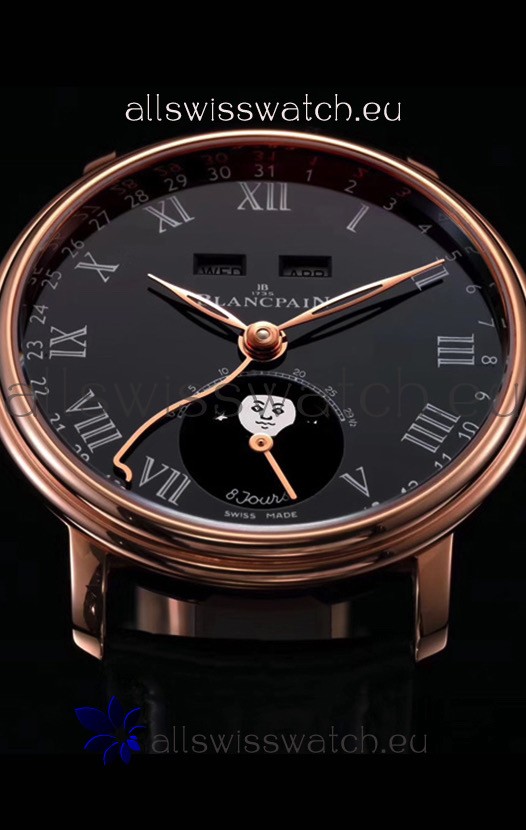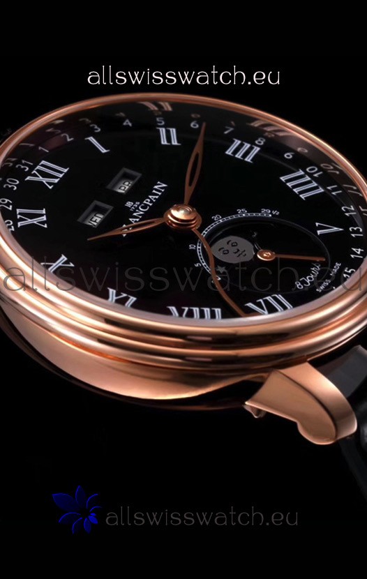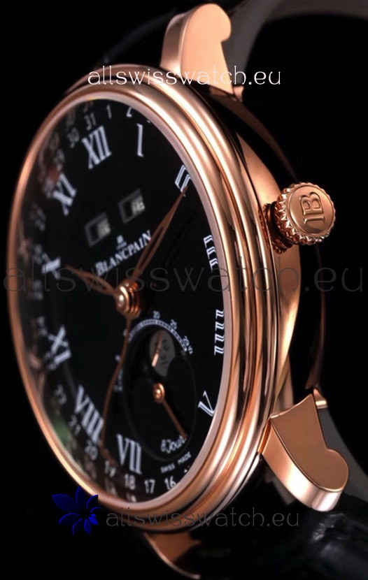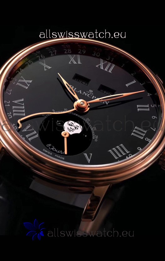 You're reviewing: Blancpain "Villeret Quantième Complet" 904L Steel Rose Gold Watch in Black Dial