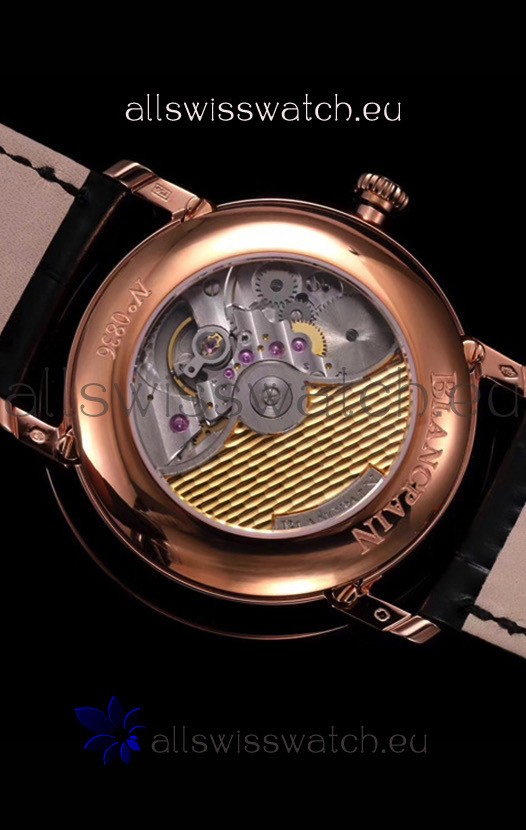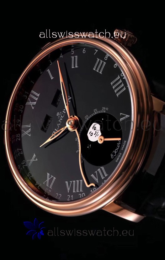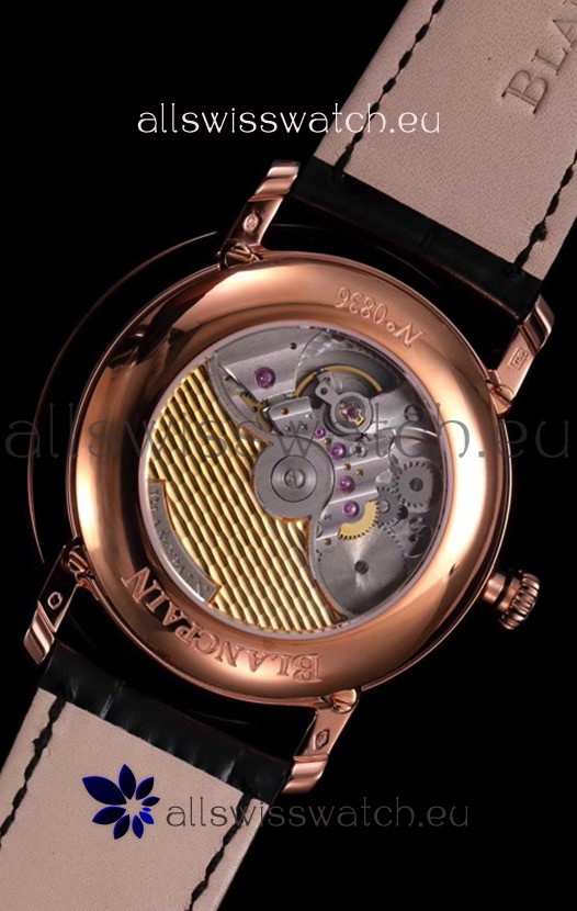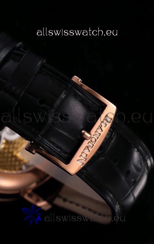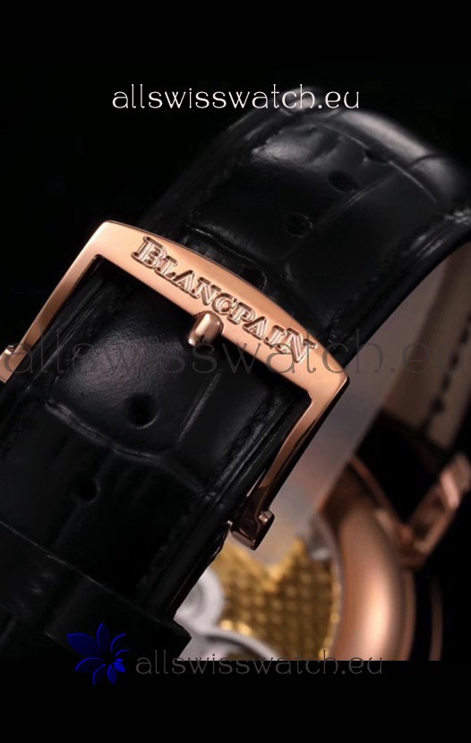 Genuine Black Leather Strap with Rose Gold Plated Steel Foloding Clasps complete Blancpain Markings and Engravings.