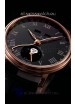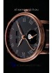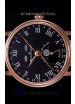 Black Dial with Roman Hour Numerals, Functional Moon Phase indicator for 12/24 hours function and Functional Date Indicator with Zig-Zag Hands as per the originals. Functional Day and Month Indicator