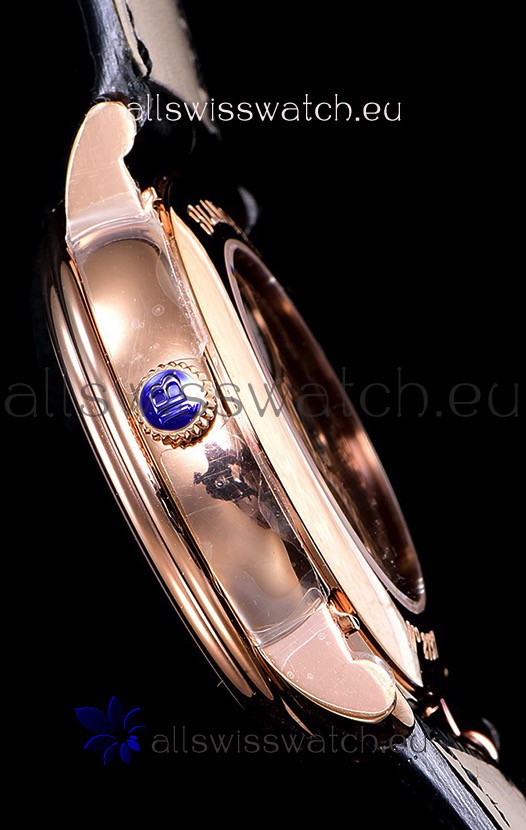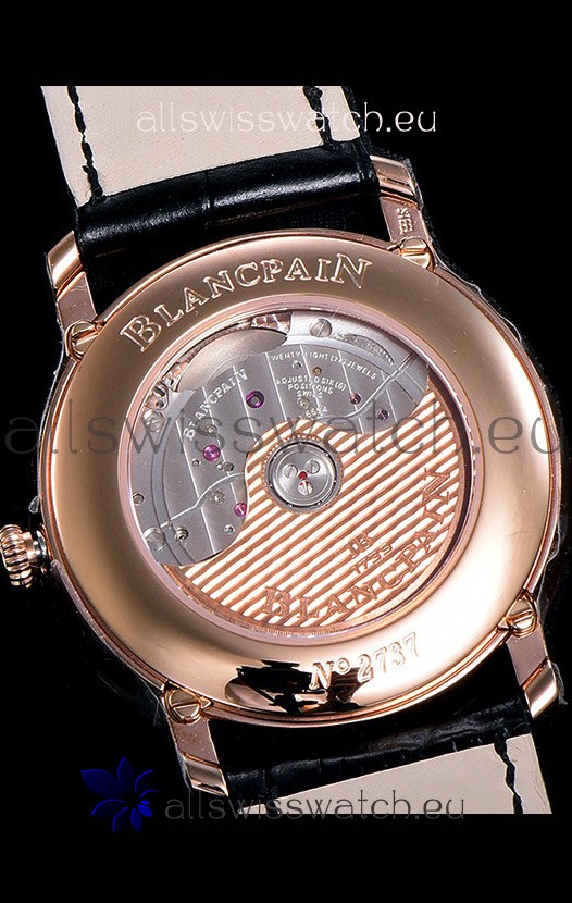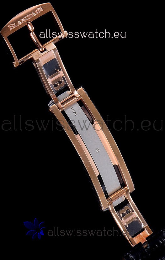 Genuine Black Leather Strap with Rose Gold Plated Steel Foloding Clasps complete Blancpain Markings and Engravings.
