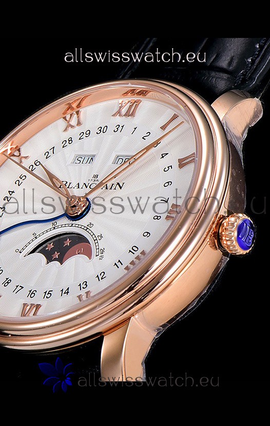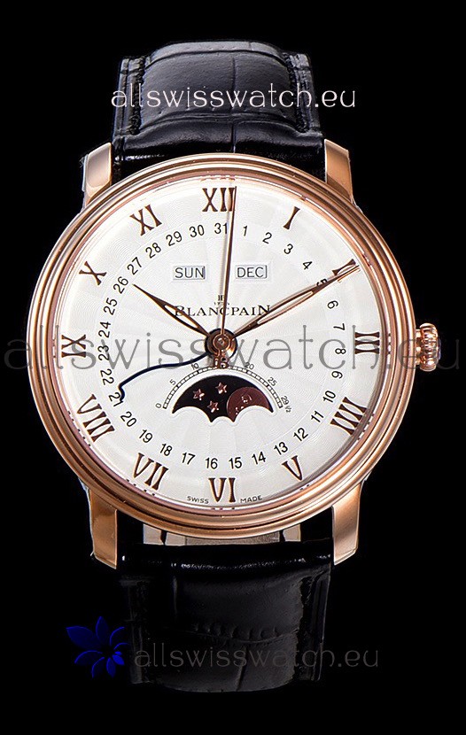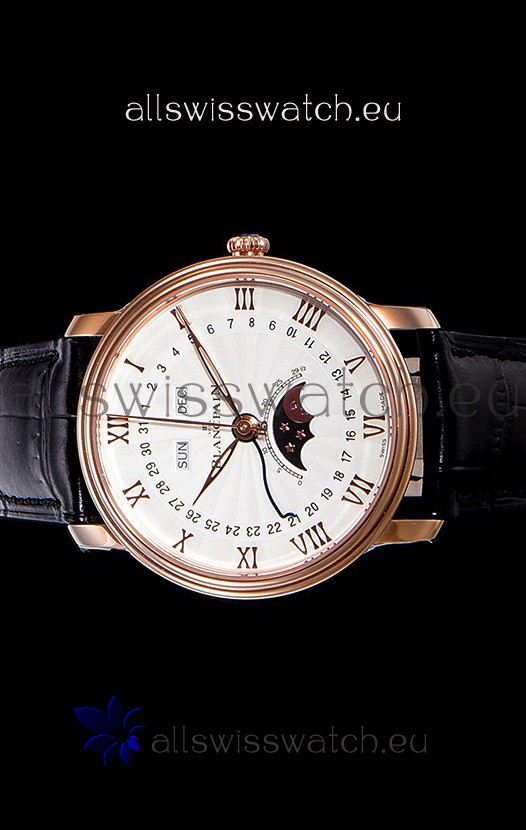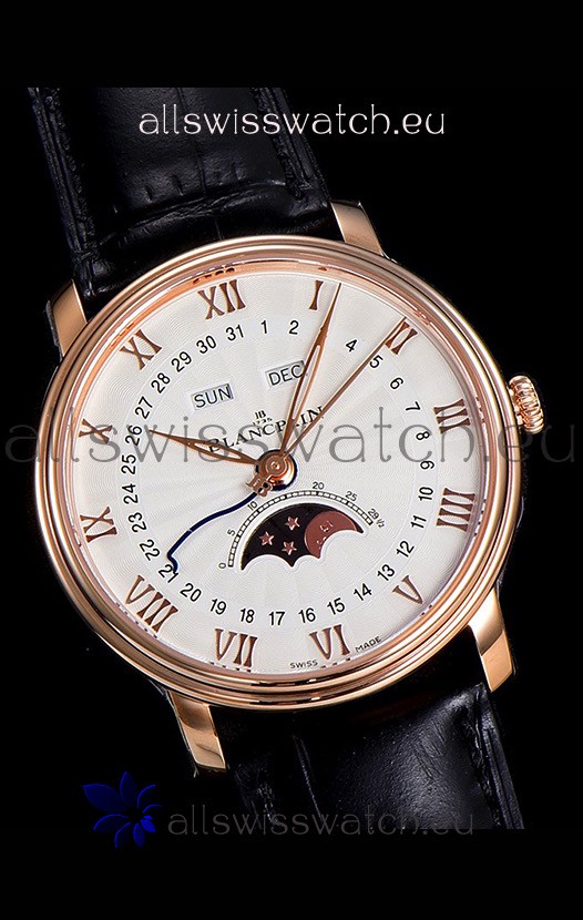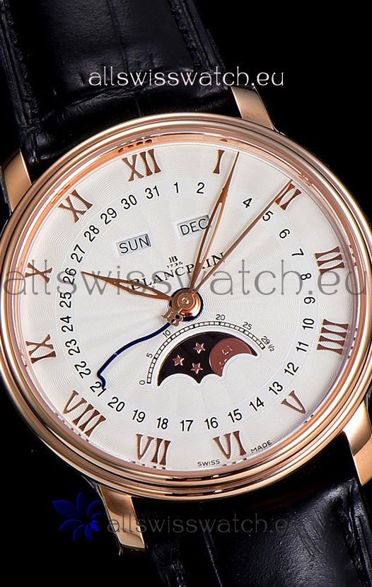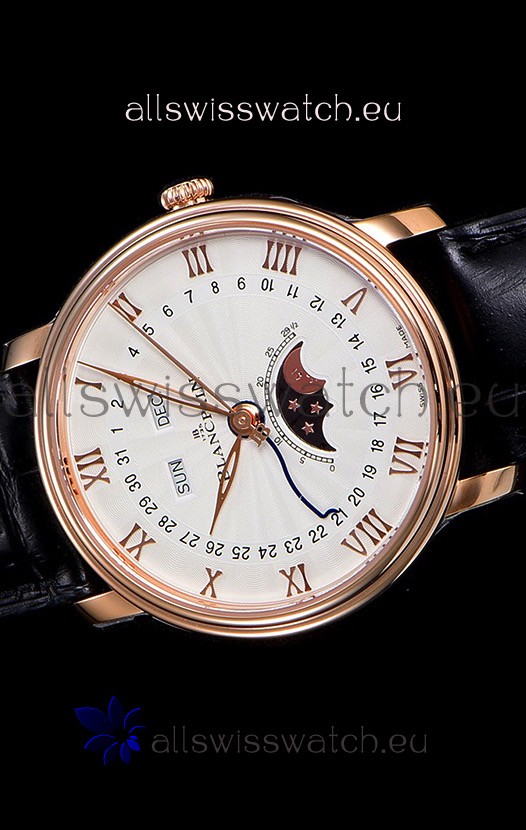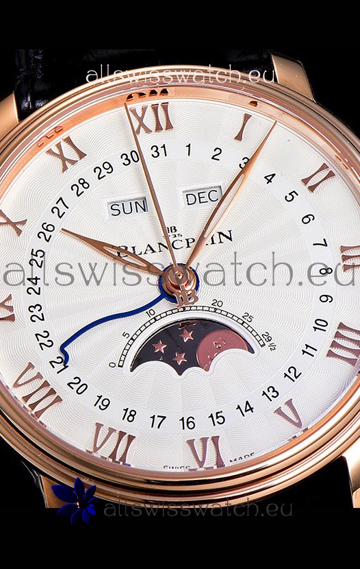 You're reviewing: Blancpain "Villeret Quantième Complet" 904L Steel Rose Gold Watch in White Dial