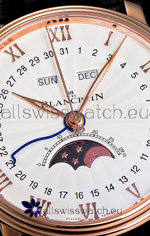 Blancpain "Villeret Quantième Complet" 904L Steel Rose Gold Watch in White Dial