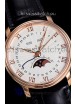 White Dial with Roman Hour Numerals, Functional Moon Phase indicator for 12/24 hours function and Functional Date Indicator with Zig-Zag Hands as per the originals. Functional Day and Month Indicator
