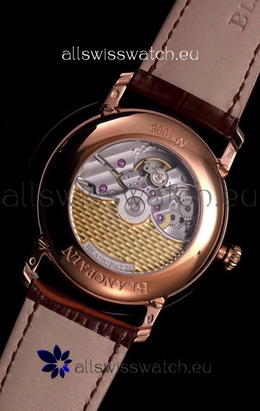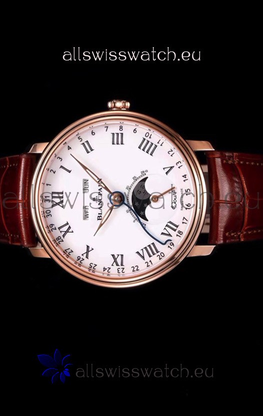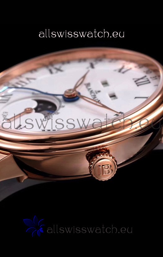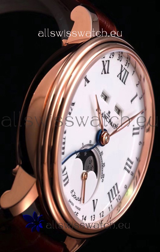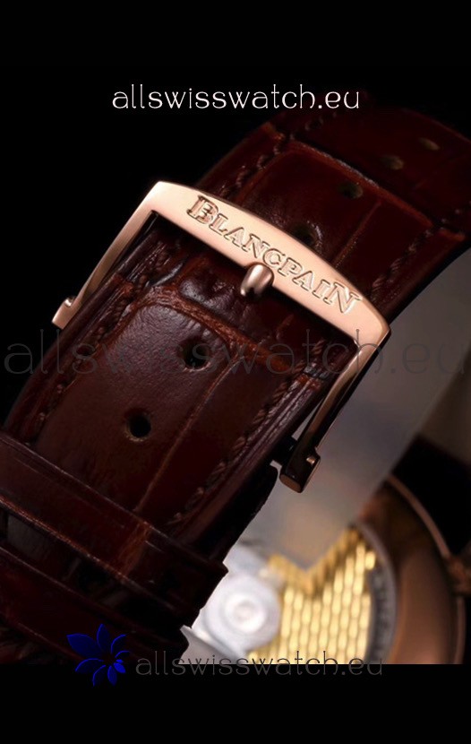 Genuine Brown Leather Strap with Rose Gold Plated Steel Foloding Clasps complete Blancpain Markings and Engravings.