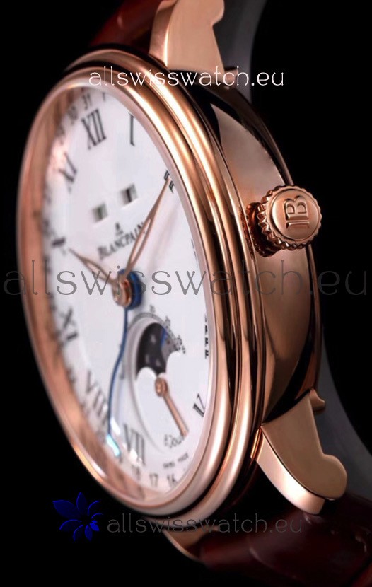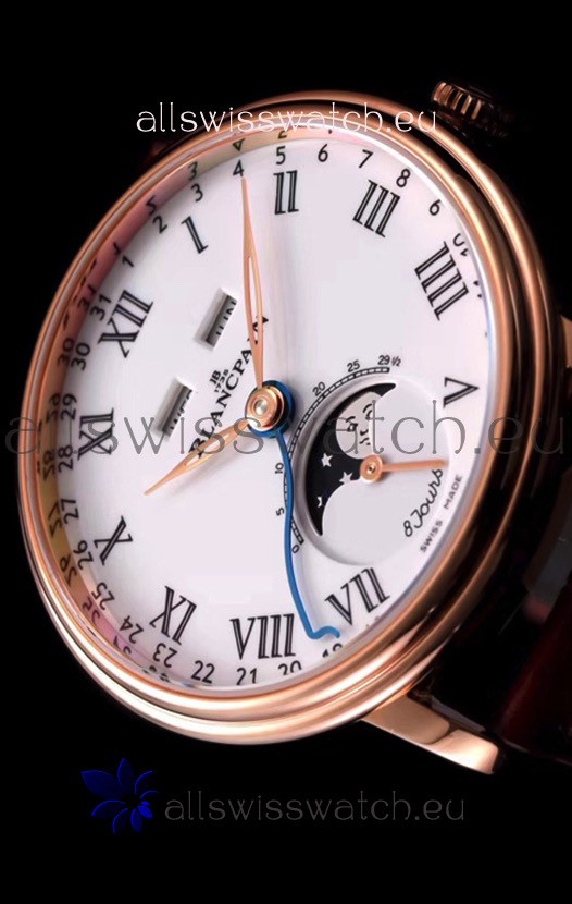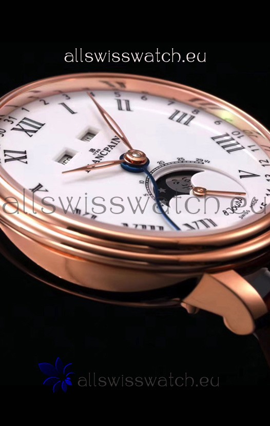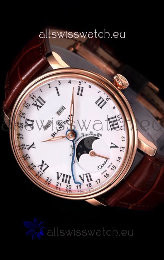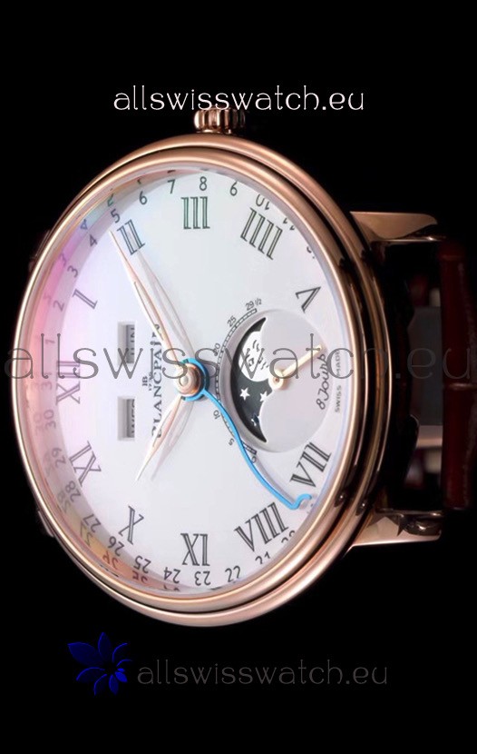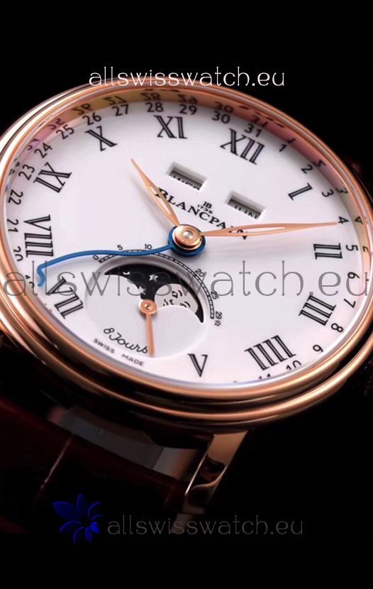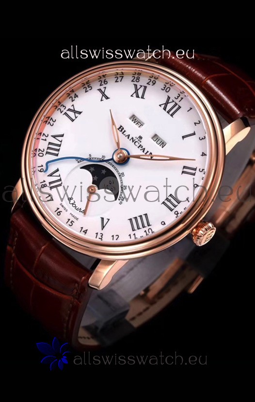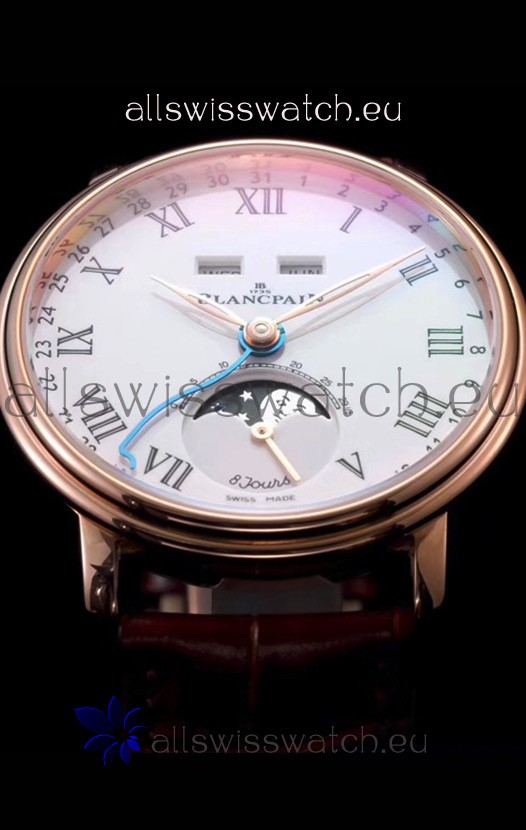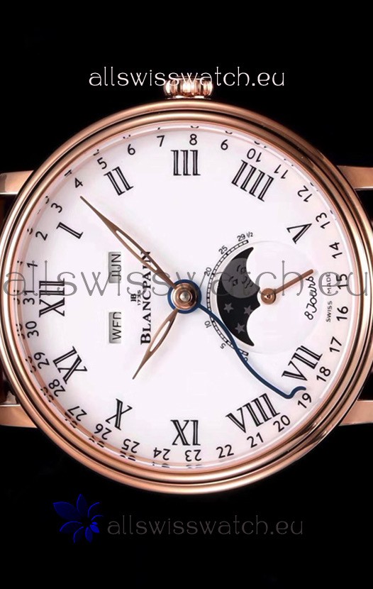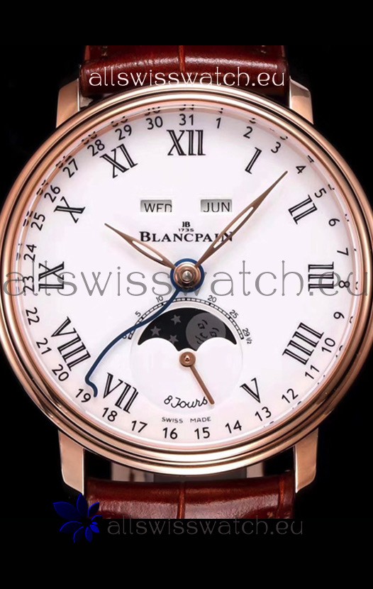 Blancpain "Villeret Quantième Complet" 904L Steel Rose Gold Watch in White Dial