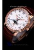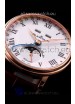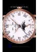 White Dial with Roman Hour Numerals, Functional Moon Phase indicator for 12/24 hours function and Functional Date Indicator with Zig-Zag Hands as per the originals. Functional Day and Month Indicator