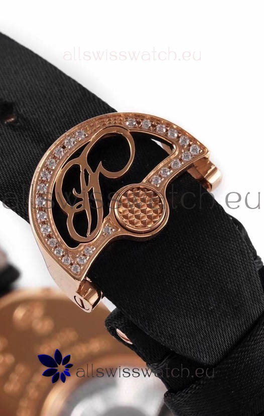 18K Rose Gold Plating on Stainless Steel Folding Buckle embedded with Diamonds.