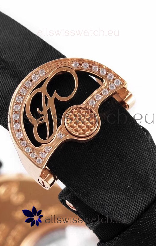 18K Rose Gold Plating on Stainless Steel Folding Buckle embedded with Diamonds.