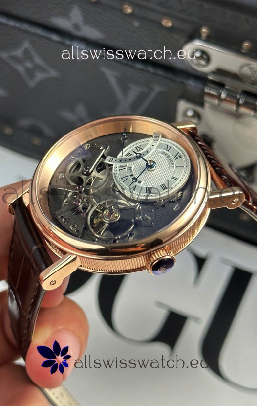 Breguet Tradition 7057BR/R9/9W6 Rose Gold Casing Single Tourbillon Swiss Replica Brown Strap Watch