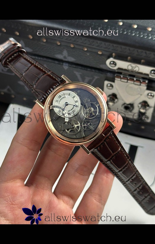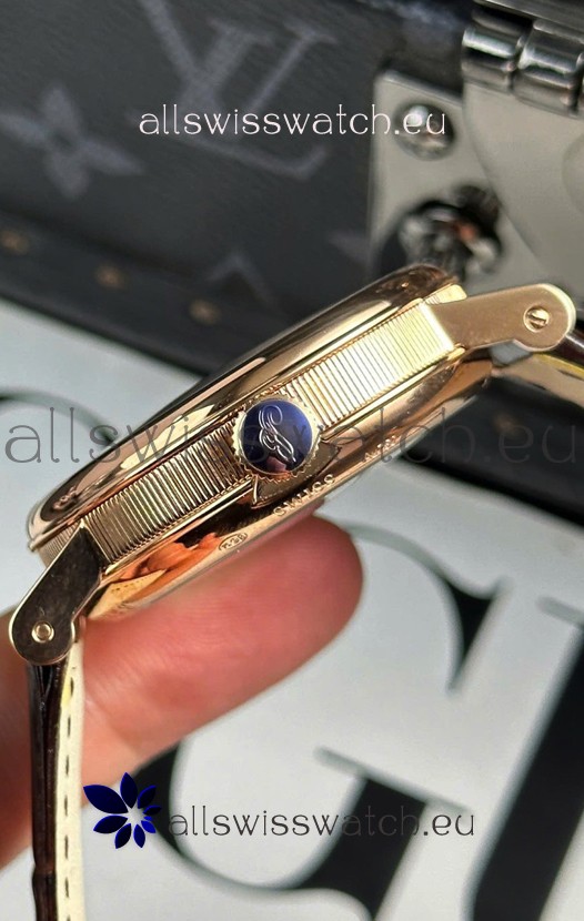 18K Rose Gold 904L Steel Case complete with Breguet Markings and Engravings