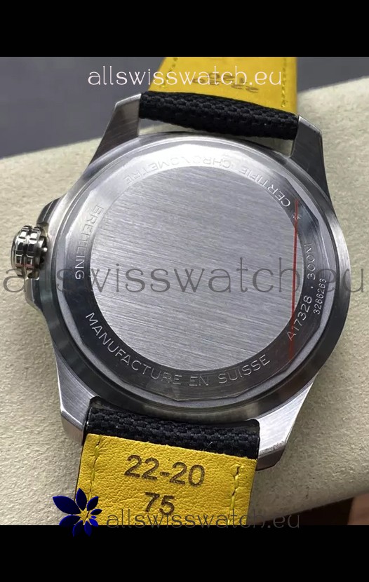 Solid Caseback with Breitling Markings and Engravings.
