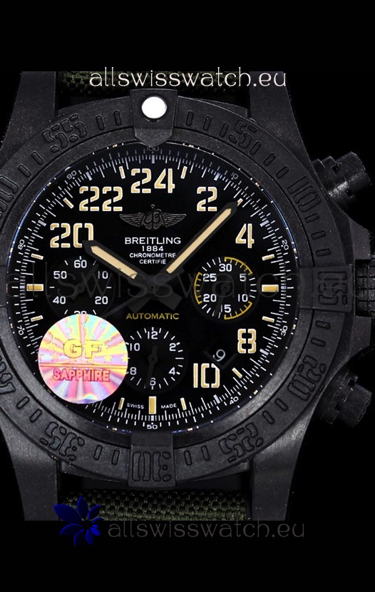 Breitling Avenger Hurricane Chronograph Black Dial Khaki Nylon - DLC Coating Swiss Replica Watch