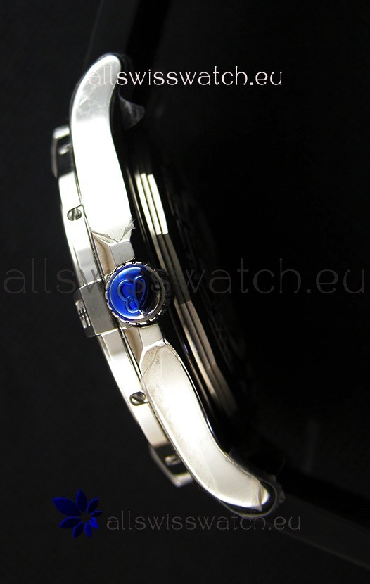 Black Dial with Arabic Hour Numerals Hour Markers and Date Indicator with Crisp Sharp Markings on Dial. Functional GMT Hand which can be set independently through the Stem.