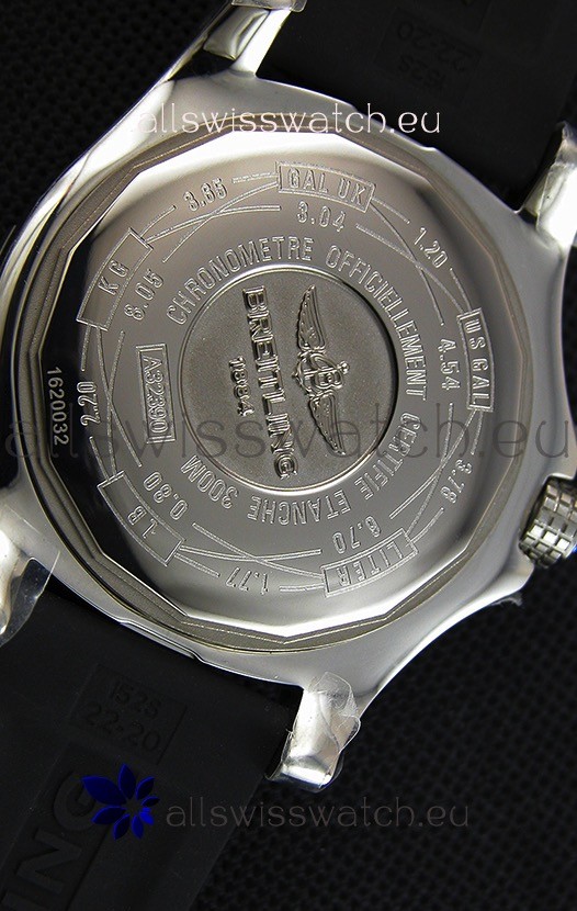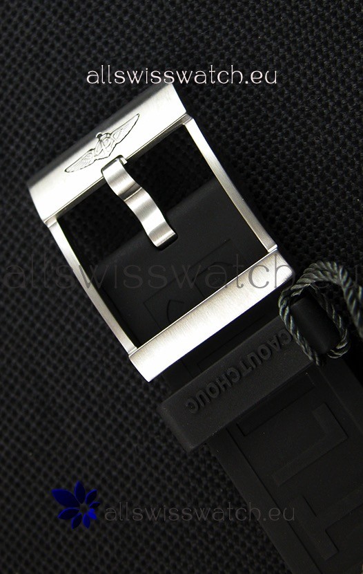 Genuine Rubber Strap with Stainless Steel Tang Buckle complete with Breitling Markings and Engravings