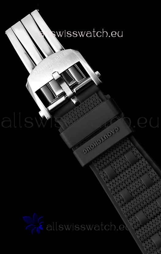 Genuine Dust Proof Rubber Strap with Fold Over with Push Button Release complete with Breitling Markings and Engravings as per the originals