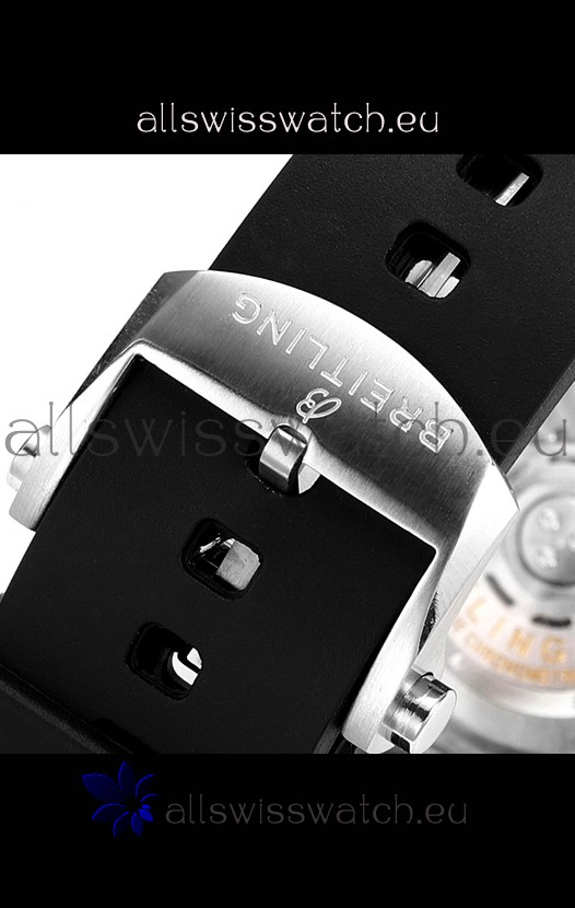Genuine Rubber Strap with Tang Buckle complete with Breitling Markings and Engravings as per the originals