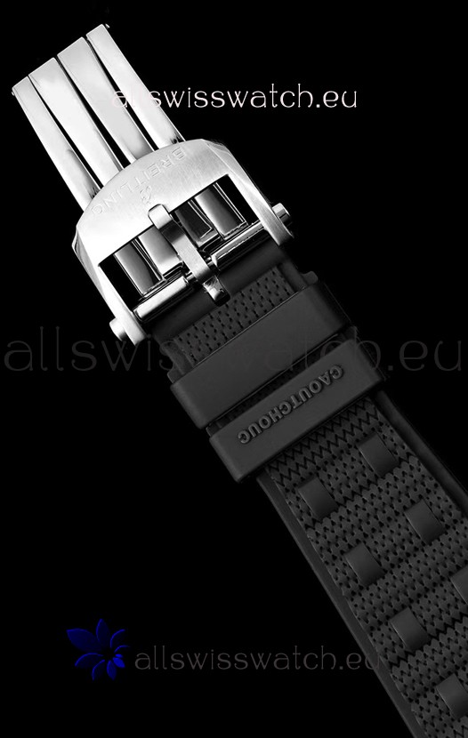 Genuine Dust Proof Rubber Strap with Fold Over with Push Button Release complete with Breitling Markings and Engravings as per the originals