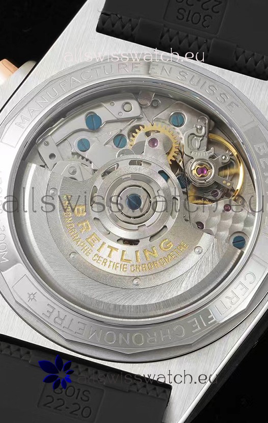 904L Stainless Steel Case complete with Breitling Markings and Engravings. 18K Rose Gold Plating on 4 Spots on the Bezel