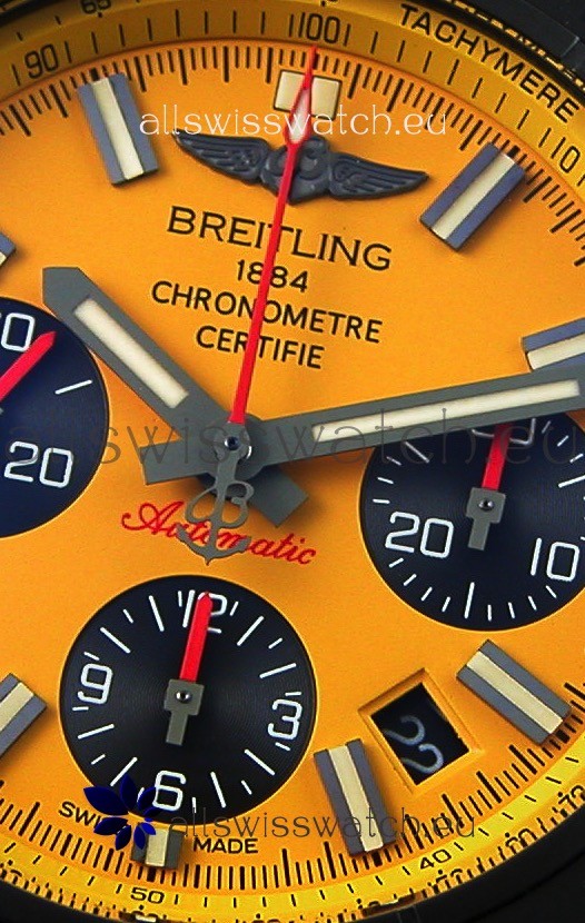 Super Lumed Hour and Minutes Hands. Solid Caseback with Breitling Markings and Engravings.