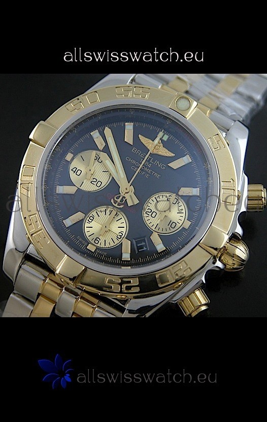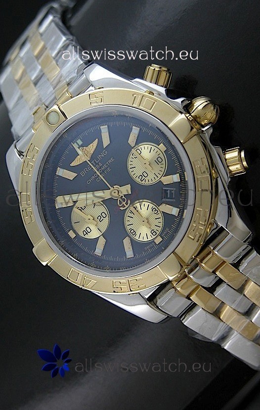 Watch name: Breitling Chronomat B01 Two Tone Swiss Watch in Black Dial