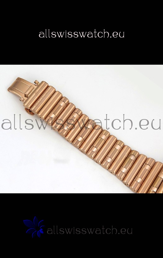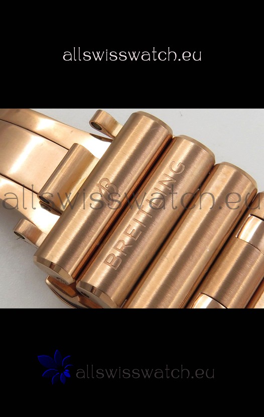 18K Rose Gold Plating on 904L Steel Strap linked with Pins as per the originals complete with Breitling Markings and Engravings as per the originals