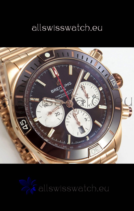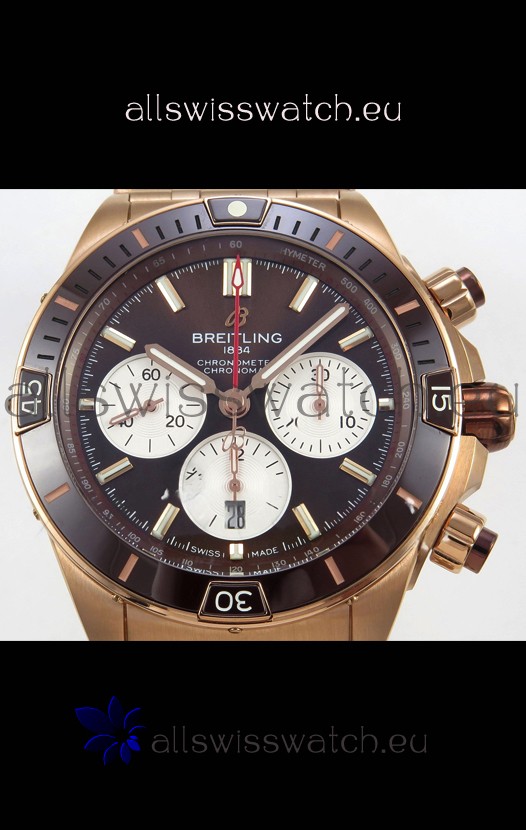 Breitling Chronomat Super Clone B01 42 Edition Swiss Rose Gold Casing Brown Dial