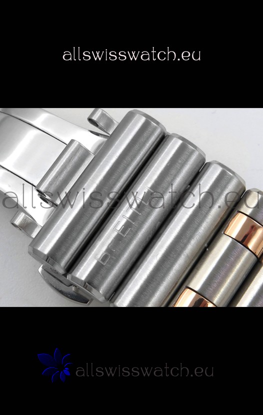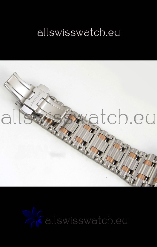 18K Two Tone Rose Gold Plating on 904L Steel Strap linked with Pins as per the originals complete with Breitling Markings and Engravings as per the originals