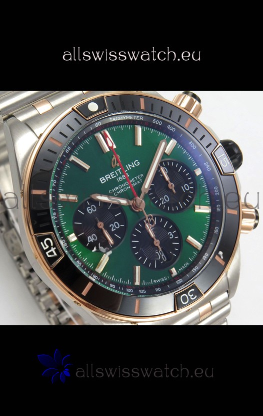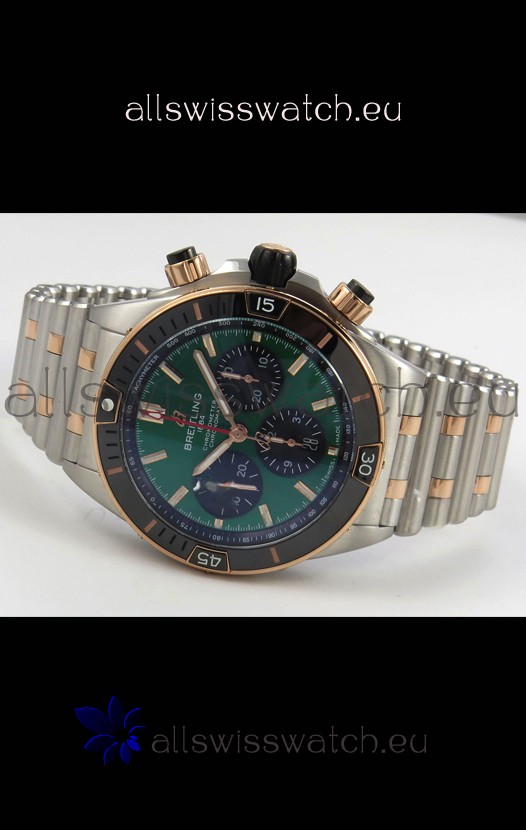 Breitling Chronomat Super Clone B01 42 Edition Swiss Two Tone Green Dial Watch