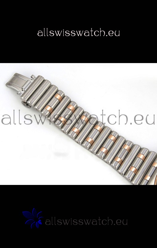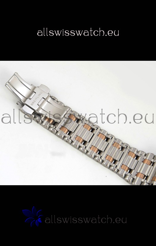 18K Two Tone Rose Gold Plating on 904L Steel Strap linked with Pins as per the originals complete with Breitling Markings and Engravings as per the originals