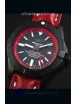 Black Carbon Dial with Stick Hour Markers and Date Indicator with Functional Fourth GMT Hand.