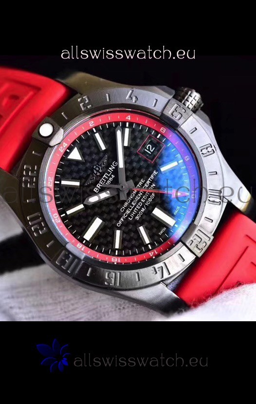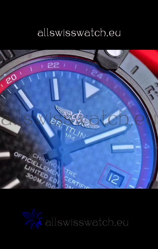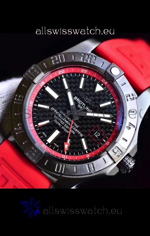 Breitling Chronometre GMT Carbon Dial Swiss Watch with Rubber Strap 1:1 Mirror Replica