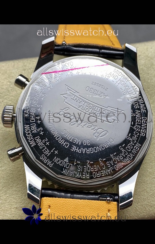 Solid Caseback with Breitling Markings and Engravings.